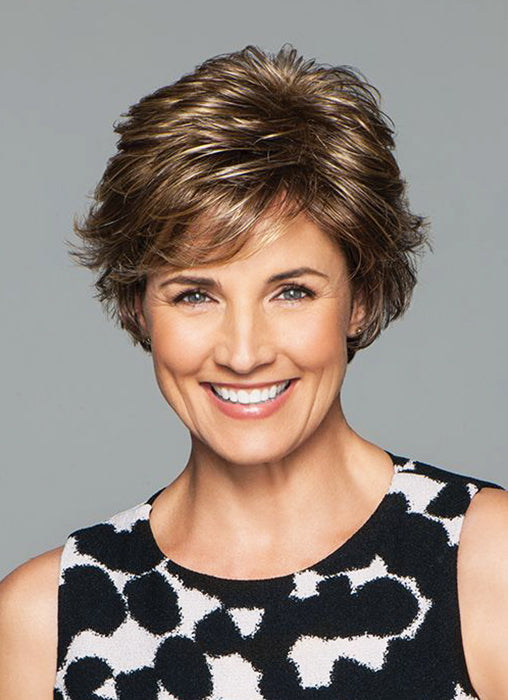 Perk Petite by Gabor is a short synthetic wig, with textured layers throughout. Featuring with an open weft cap construction allowing for an airy cool design which is lightweight and ideal for everyday wear.