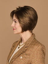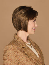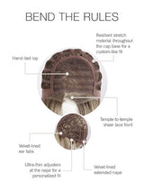 Bend the Rules by Gabor is a classic chin length angled bob. Features with a monofilament top that resembles the most realistic hairline and enables parting versatility an invisible lace front which blends naturally against your hairline for off the face styling.