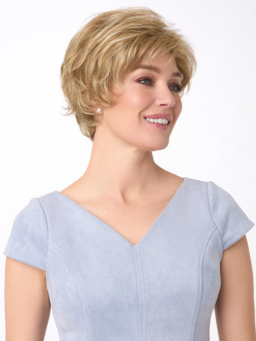 Colours may appear marginally different then shown in displayed image depending on the hair fibre or style. Each colour in the images shown can change from one screen to another. As well some hairpieces are made by hand, and each individual hair colour can slightly differ in shade. These colour swatches are intended to give you a good depiction of the shading, yet may fluctuate slightly from one piece to another.• design: wig