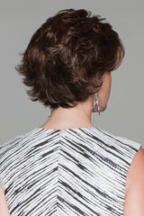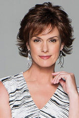 Carte Blanche by Gabor Synthetic Wig is a classic flipped out silhouette. Featuring a hand knotted top that resembles the most realistic hairline and enables parting versatility and multi-directional styling. The impeccable extended lace front offers you a natural hairline allowing for off the face styling.