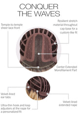 It’s the tousled waves and soft bangs look you’ve been waiting for! The temple-to-temple lace front lets you wear the wispy bangs piecey and broken up. A center monofilament and mid-length loose beachy waves make this style right on trend.