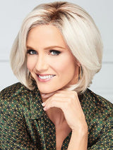 Epic by Gabor Spring Collection synthetic wig is a beautiful swept under mid length bob. The impeccable extended lace front offers you a natural hairline allowing for off the face styling. The wefted caps adapt very well to the shape of the head and allow air to circulate.
