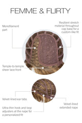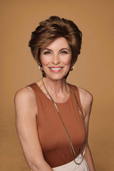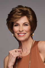 Fall in love with the stunning Femme and Flirty wig from Gabor! Achieve a salon-fresh blowout look with this short style, featuring beautifully brushed layers and a gentle round shape. Customize your look by wearing the bangs to the side or framing your face with the lace front.