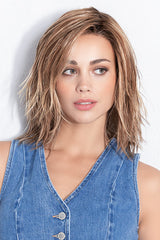 Flow by Ellen Wille from the renowned Perucci Collection offers a medium-length style with soft waves and long layers that create natural movement and volume. Crafted from heat-friendly synthetic fibers, this lightweight wig features an open-wefted cap for breathability, ensuring comfort all day long. The monofilament part and lace front deliver a realistic scalp appearance, making Flow a perfect choice for a natural, confident look.