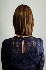 Jody is a mid-length, feathery bob with soft bangs that create a light, airy look. The open wefted cap provides breathability and comfort, while the full monofilament top ensures a natural appearance and allows for versatile parting. The extended temple-to-temple lace front offers a seamless, realistic hairline, ideal for styling off the face. Designed with velvet ear tabs and a velvet nape with a removable silicone strip, it ensures a secure and comfortable fit, with velcro adjusters for easy customization. Made from heat friendly synthetic fiber, Jody has a lightweight feel and no permatease, delivering a smooth and natural look. The soft, feathery layers and bangs frame the face beautifully, making it a stylish and versatile choice.