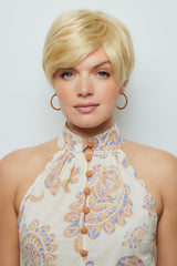 Colours may appear marginally different then shown in displayed image depending on the hair fibre or style. Each colour in the images shown can change from one screen to another. As well some hairpieces are made by hand, and each individual hair colour can slightly differ in shade. These colour swatches are intended to give you a good depiction of the shading, yet may fluctuate slightly from one piece to another.• design: wig