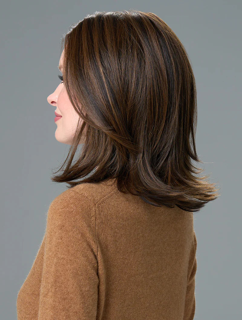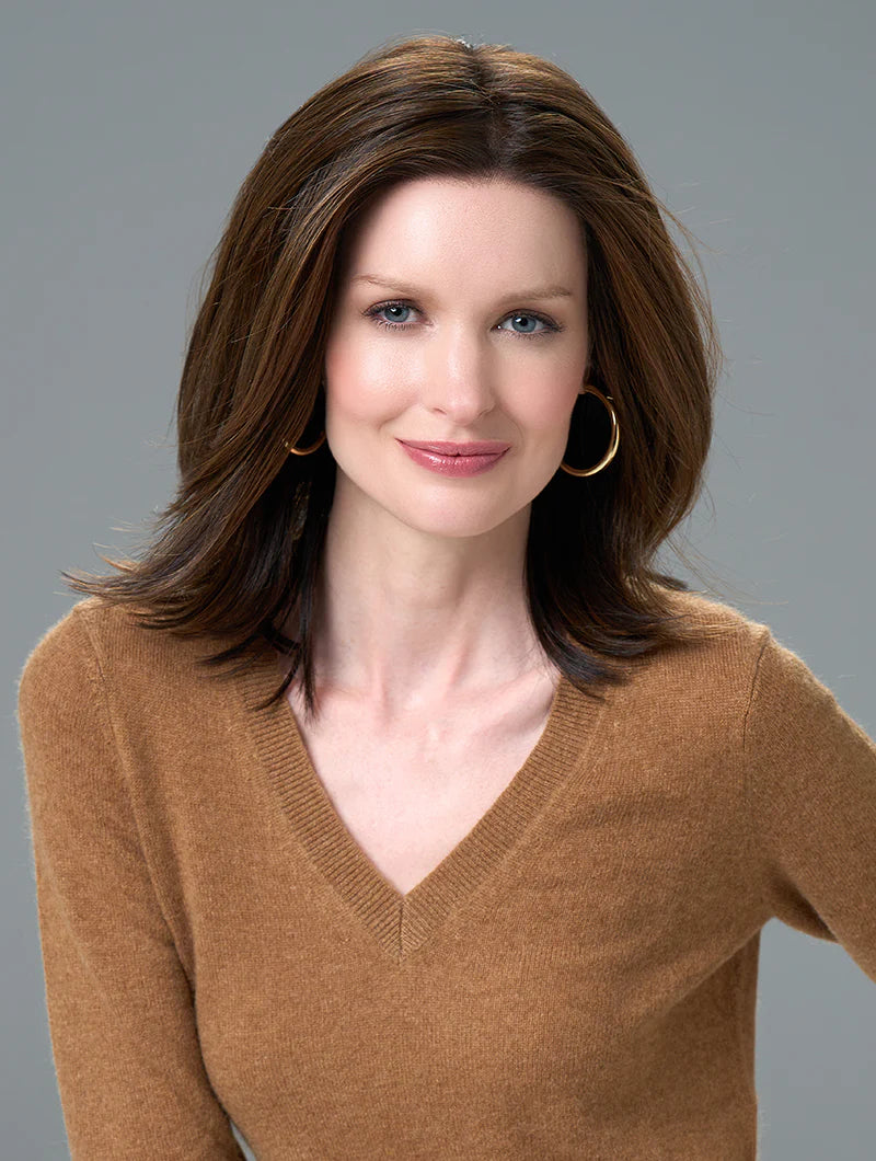 Lisa by Envy Wigs offers a modern twist on the timeless long bob. Its silky, straight layers gently frame the face, creating a sleek and polished look. Designed with a monofilament top and hand-tied cap, it delivers effortless movement and a realistic scalp appearance for all-day comfort. Crafted from a premium blend of human hair and heat-friendly fibers.