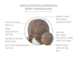 • base design: 100% Hand-tied cap is entirely hand-knotted, meaning each individual hair is tied to the base. This creates natural movement and allows the hair to move freely. The soft cap makes it more comfortable to wear and is ideal for a sensitive scalp.