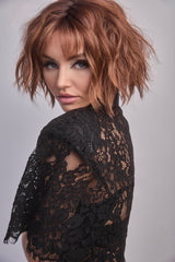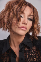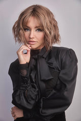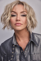 Rosanna from Rene of Paris is a chic short wig in the Alexander Couture Collection. This stylish bob showcases relaxed beach waves and gentle bangs, creating a modern, easygoing look. Made from heat-friendly synthetic fiber, it allows versatile styling options. The cap features an extended lace front and lace part with soft lace for added comfort. Adjustable tabs at the back ensure a snug, secure fit all day long.
