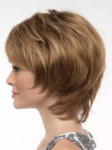 Experience the ultimate versatility and effortless style with Savannah by Envy - a short, layered and voluminous synthetic wig. The monofilament top allows for customizable parting and adds natural-looking volume on the top and crown. This classic cut features a full layered bang that can be styled to the side or trimmed by your stylist for a personalized look. The bang and fringe frame the face for a flattering effect that will leave you feeling polished and confident. And with its pre-styled and weather-resistant straight synthetic hair, this shorty will maintain its shape and shine, wash after wash.