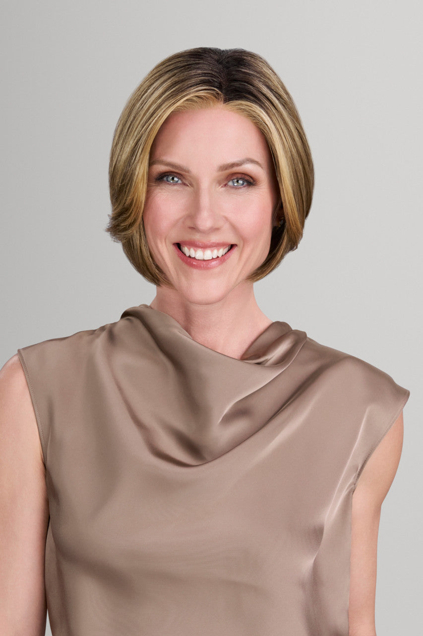 Shelby features a lightweight build with an extended SmartLace™ front that stretches from ear to ear, providing an authentic look in a stylish, modern bob. The stacked layers at the back create texture and flow, while the graduated shape forms a striking, contemporary outline. A monofilament top paired with a wefted back ensures natural parting, excellent breathability, and a comfortable, secure fit. Shelby reinvents a classic style with a fresh, vibrant edge.