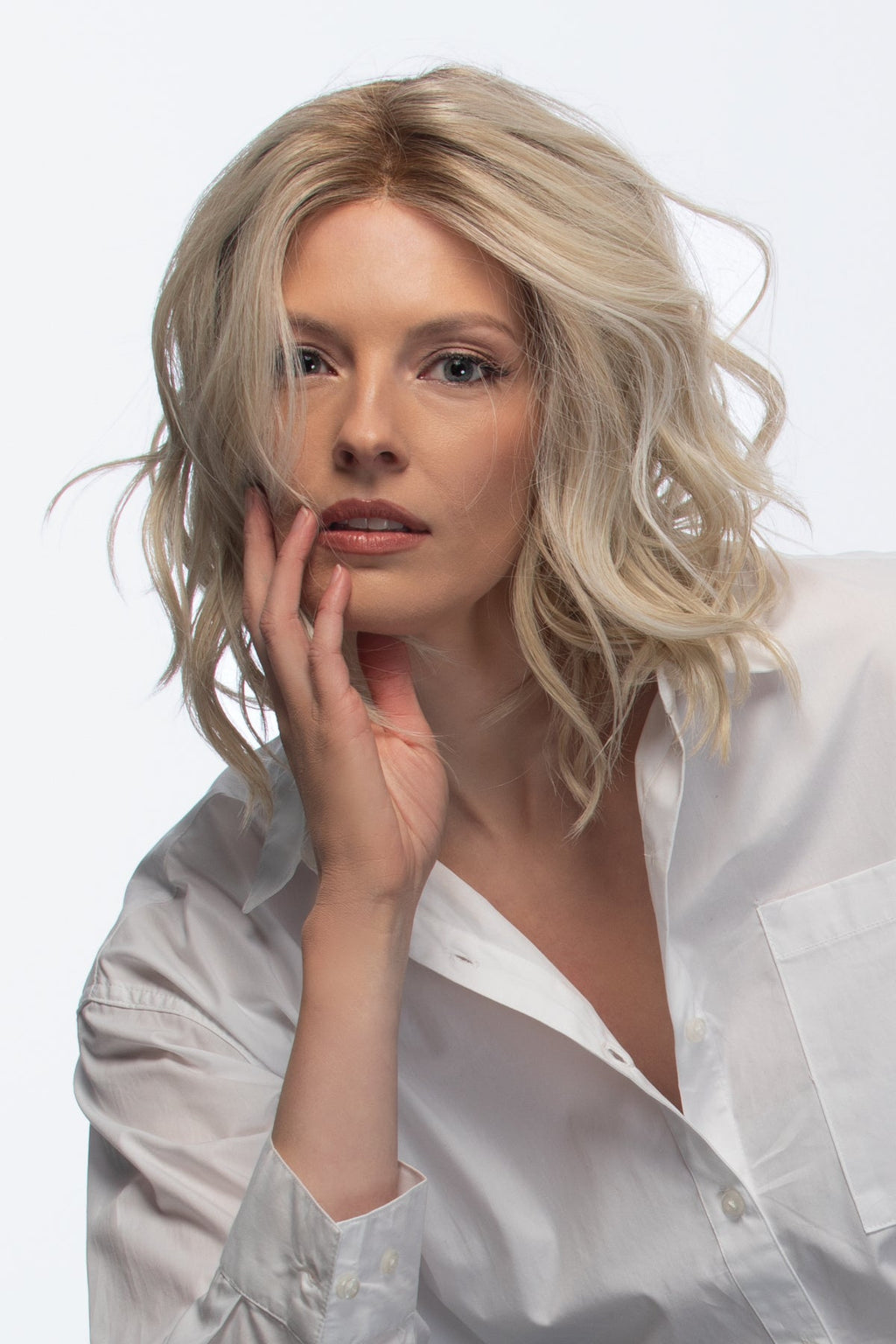Somers is a mid-length style with soft, loose waves and heat-friendly fibers for a natural, effortless look.
