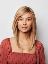 Experience the ultimate comfort and style with Thea, a beautiful medium length Remy human hair wig from the Amore Collection. Its delicate lace front and monofilament top are complemented by silicone strips for maximum comfort. The hand-tied cap is meticulously crafted, ensuring a lightweight and comfortable fit.
